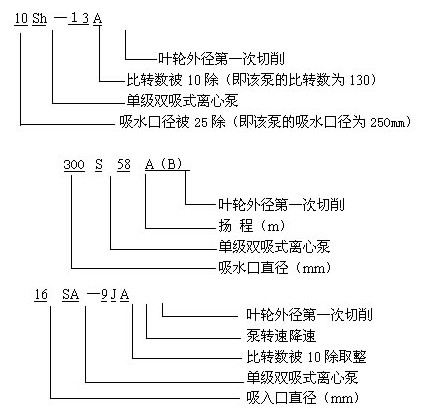 SH/S/SA雙吸中開離心泵型號意義:
