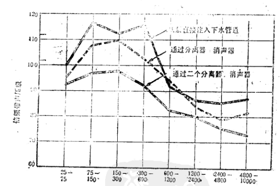 造紙生產中,微粒紙槳用吸水壓力機及真空泵除去其水分。空氣與水的混合物流入泄水口,水的緩動引起流注無規則的脈動。工人雖不在流注區域逗留,但在離流注管一定距離處的噪聲級仍比較高。有一個實例,流注管子的脈動頻率偶然與泵的脈功率率相同,因此擾亂了這個問題,控制方案選擇解決的方法是使用特殊組合的專門消聲器和具有消聲器作用的水/空氣分離器。除了使用水/空氣分離器以外,它的長度應該可變,以使系統失諧。