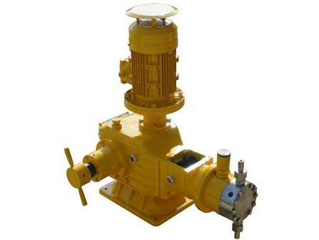 電機經聯軸器帶動蝸桿并通過蝸輪減速使主軸和偏心輪作回轉運動,由偏心輪帶動挺桿在導筒內作往復運動。連同柱塞,通過單向閥的作用使泵腔內逐漸形成真空,吸入閥打開,吸入液體;當柱塞向前死點移動時,此時吸入閥關閉,排出閥打開,液體在膜片的推動下排出。在泵通過調節一定的行程的往復順還工作形成連續有壓力、定量的排放液體。